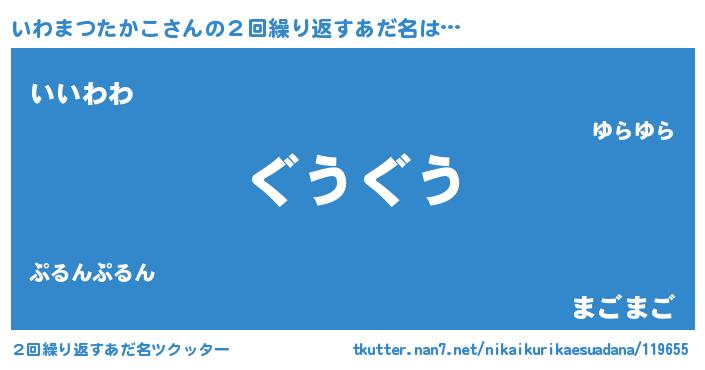 | 可愛いあだ名 | 『いわまつたかこママ』『いわちー』 |