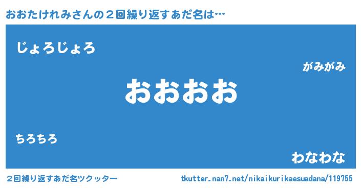 | 男性向けラノベタイトル風あだ名 | 『やはりおおたけれみの青春ラブコメはまちがっている 』 |