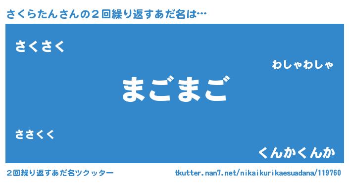 | 意味不明あだ名 | 『自称さくらたん』『ペロリンさくらたん』 |