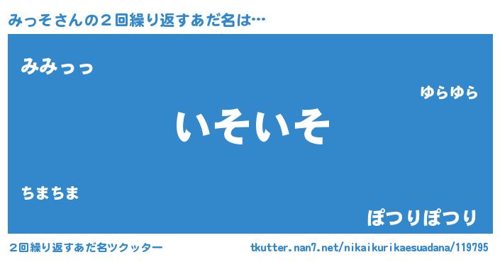 | 料理風あだ名 | 『みっその豆乳スープ』『みっそごはん』 |