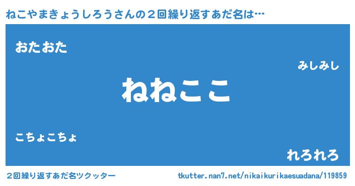 | 意味不明あだ名 | 『ねこやまきょうしろうフォーエバー』 |