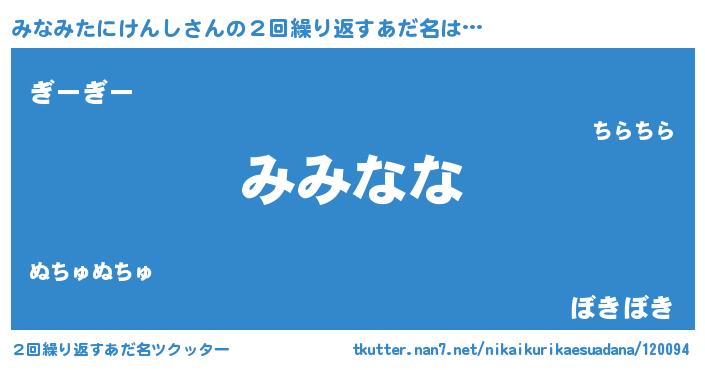 | 欧米人風あだ名 | 『みなみたにけんしクリステル』 |