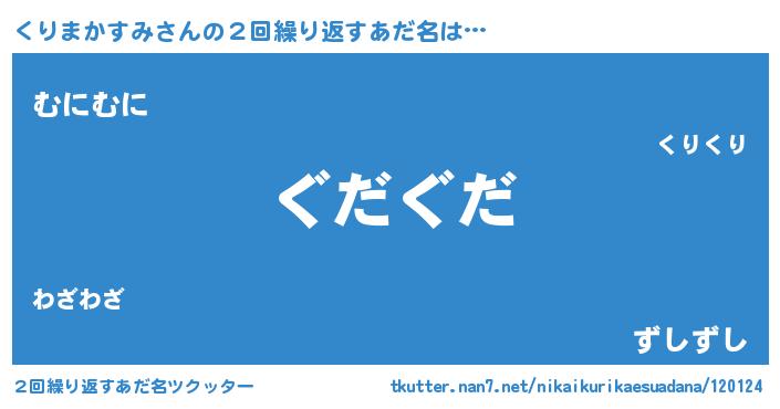 | ヘコむあだ名 | 『くりまかすみ(笑)』『くりっふぃ~』 |