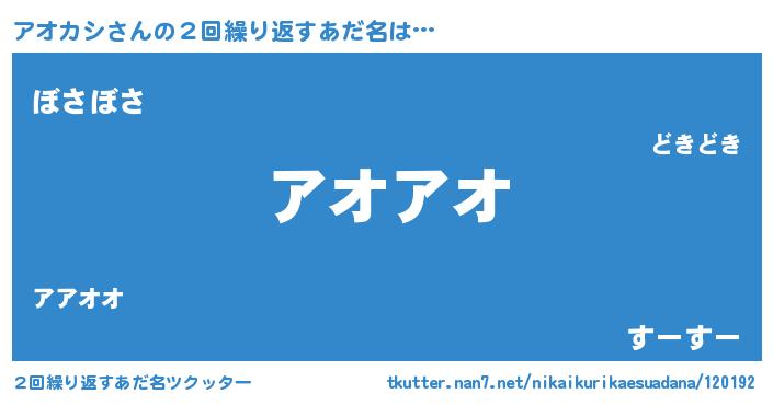 | ポケモン風あだ名 | 『アオチュウ』『アックウザ』 |