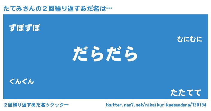 | 意味不明あだ名 | 『住所不定無職たてみ(74歳)』『自称たてみ』 |