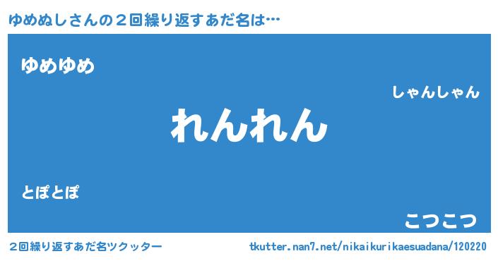 | ヘコむあだ名 | 『ゆめにゅー』『ゆめぬし(震え声)』 |