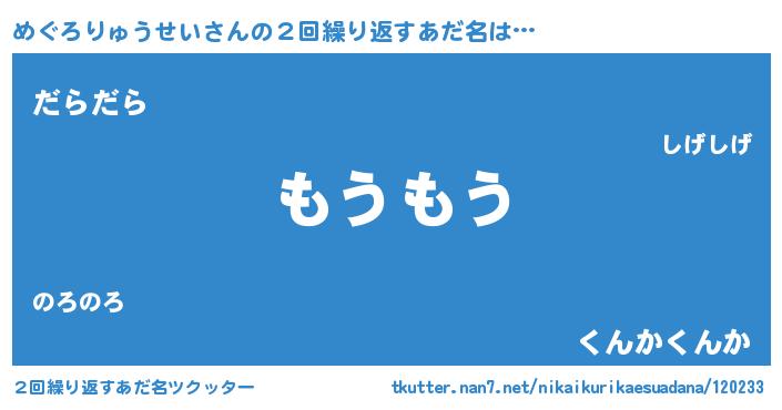 | 意味不明あだ名 | 『自称めぐろりゅうせい』 |