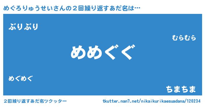 | 意味不明あだ名 | 『めぐろりゅうせいフォーエバー』 |