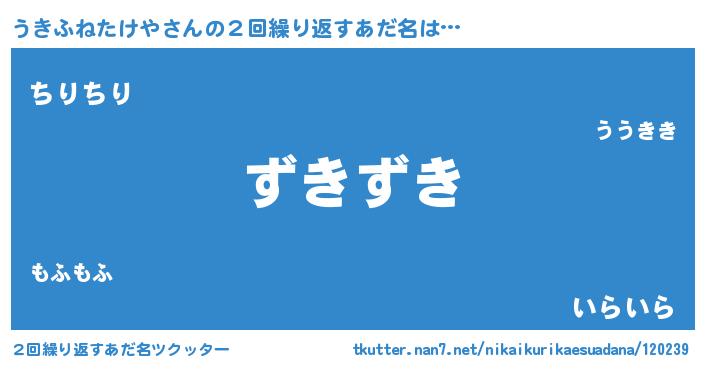 | 意味不明あだ名 | 『住所不定無職うきふねたけや(81歳)』 |
