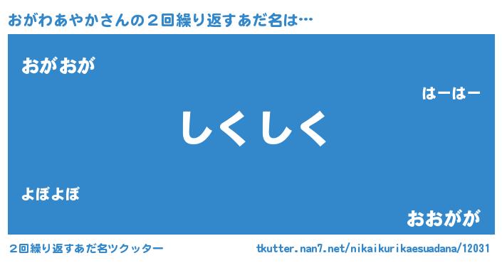 | 意味不明あだ名 | 『住所不定無職おがわあやか(8歳)』 |