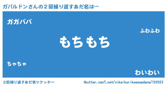 | 男性向けラノベタイトル風あだ名 | 『Re:ガバルドンから始める異世界生活』 |