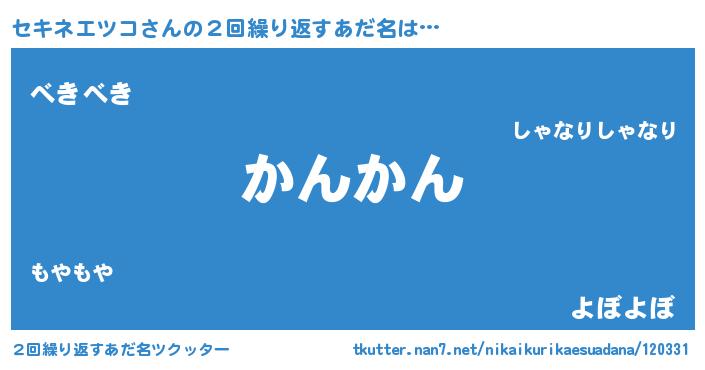 | ヘコむあだ名 | 『セキネエツコ(震え声)』『なまこ酢』 |