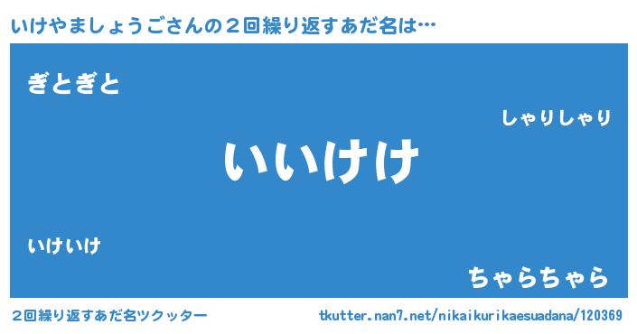| 欧米人風あだ名 | 『いけやましょうごクリステル』 |