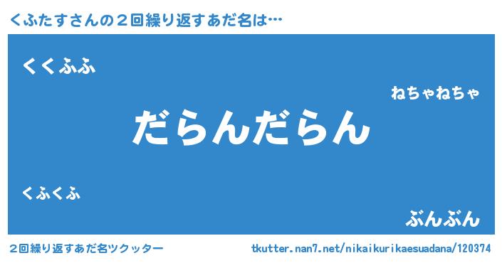 | 意味不明あだ名 | 『くふたすフォーエバー』 |