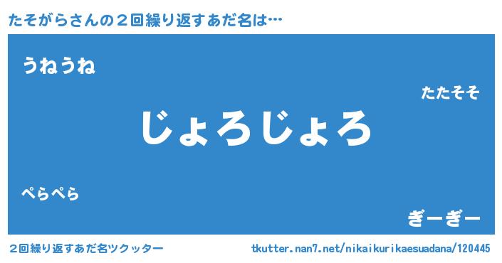 | 意味不明あだ名 | 『住所不定無職たそがら(89歳)』 |