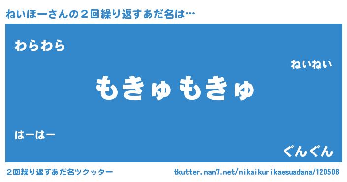 | 男性向けラノベタイトル風あだ名 | 『Re:ねいほーから始める異世界生活』 |