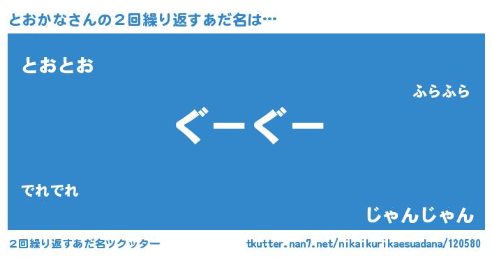 | 男性向けラノベタイトル風あだ名 | 『とおかなという概念が存在しない退屈な世界 』 |