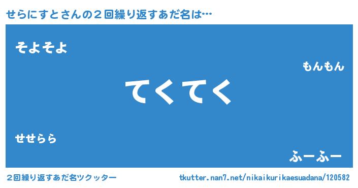 | 意味不明あだ名 | 『住所不定無職せらにすと(95歳)』 |