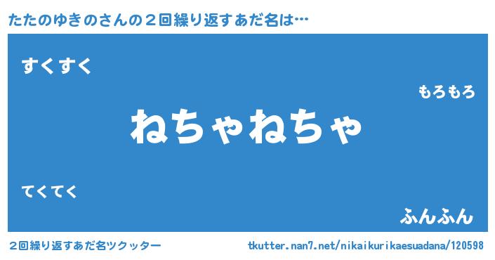 | 男性向けラノベタイトル風あだ名 | 『たたのゆきのの嫁は女の子じゃないと思った?』 |