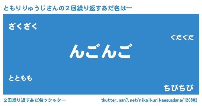 | ヘコむあだ名 | 『ともりりゅうじ(震え声)』『牛乳』 |