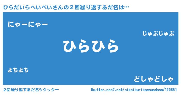 | 男性向けラノベタイトル風あだ名 | 『ひらだいらへいべいの憂鬱』 |