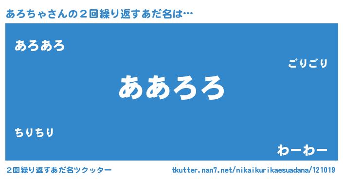 | ポケモン風あだ名 | 『アロチダネ』『アロゴンZ』 |