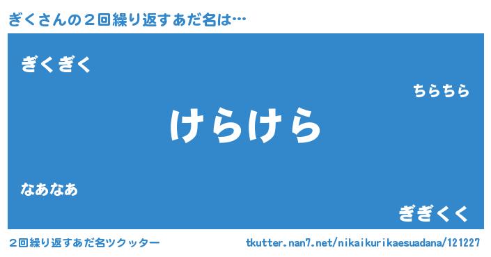 | ヘコむあだ名 | 『ぎく(笑)』『ぎくふぇ~』『つくし』 |