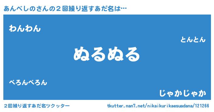 | 男性向けラノベタイトル風あだ名 | 『あんべしのの嫁は女の子じゃないと思った?』 |