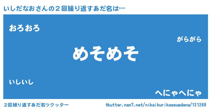| 意味不明あだ名 | 『自称いしだなお』『永久保存いしだなお』 |