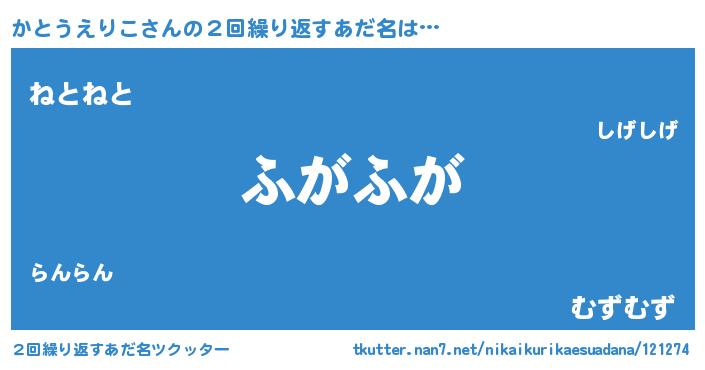 | 男性向けラノベタイトル風あだ名 | 『おまえをオタクにしてやるから、俺をかとうえりこにしてくれ! 』 |