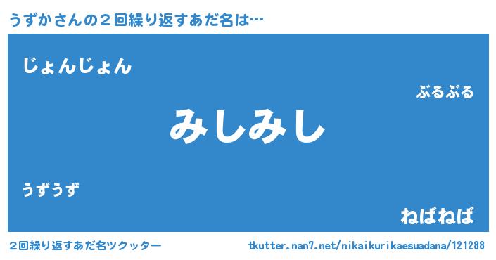 | ヘコむあだ名 | 『うずお』『うずにゅー』『豆乳』 |