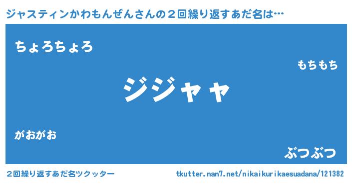 | 意味不明あだ名 | 『ジャスティンかわもんぜんフォーエバー』 |