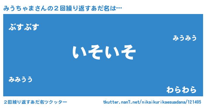 | ピコ太郎風あだ名 | 『ミウ二郎』『ミミ太郎』『ミコ二郎』 |