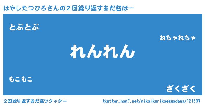 | 男性向けラノベタイトル風あだ名 | 『転生したらはやしたつひろだった件』 |