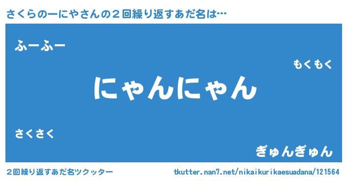 | 男性向けラノベタイトル風あだ名 | 『さくらのーにやの嫁は女の子じゃないと思った?』 |