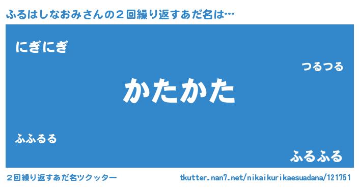 | 胡散臭い通販商品みたいなあだ名 | 『絶対に幸福をもたらす健康食品…その名も「ふるはしなおみ」』 |