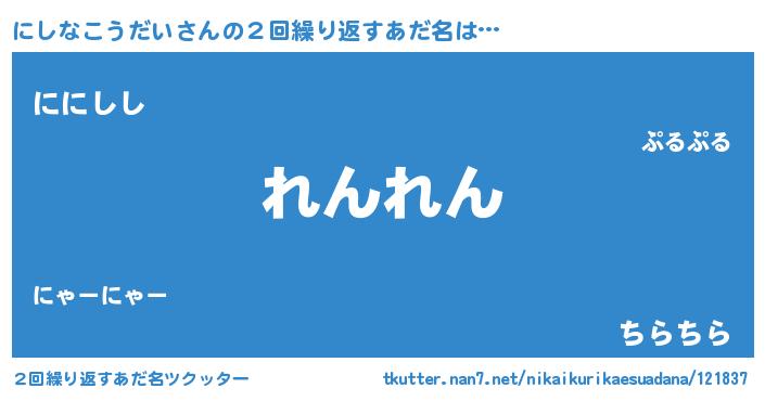 | ピコ太郎風あだ名 | 『ピニ二郎』『ニニ太郎』『ニシ十郎』 |