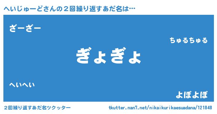 | 意味不明あだ名 | 『永久保存へいじゅーど』 |