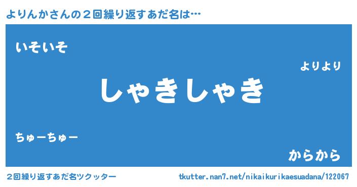 | 意味不明あだ名 | 『住所不定無職よりんか(89歳)』 |