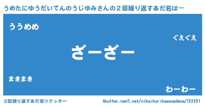 | 料理風あだ名 | 『うめたにゆうだいてんのうじゆみのカルパッチョ風』 |