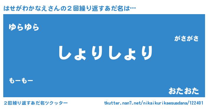 | 意味不明あだ名 | 『住所不定無職はせがわかなえ(86歳)』 |