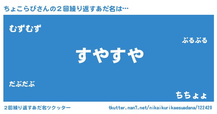 | 意味不明あだ名 | 『住所不定無職ちょこらび(74歳)』 |