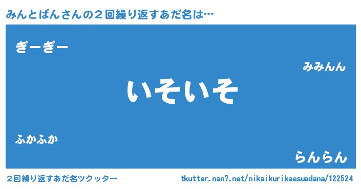 | 意味不明あだ名 | 『とにかく怪しいみんとぱん』 |