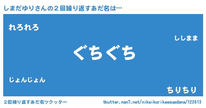 | ヘコむあだ名 | 『しまだゆり(笑)』『豆乳』 |