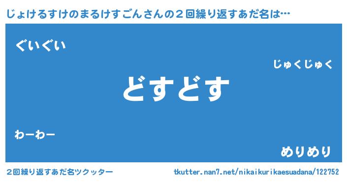 | 男性向けラノベタイトル風あだ名 | 『うちのじょけるすけのまるけすごんが世界を掌握している!』 |