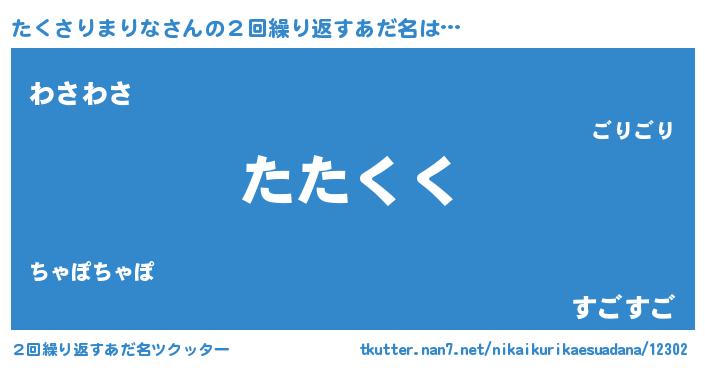 | 女子向けラノベタイトル風あだ名 | 『たくさりまりなの雑貨屋さん』 |