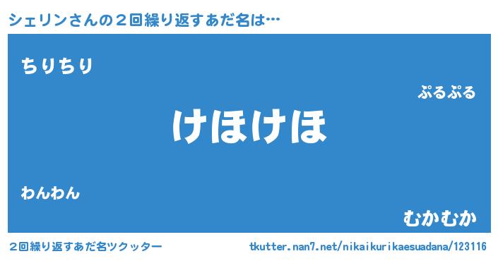 | 意味不明あだ名 | 『永久保存シェリン』『自称シェリン』 |