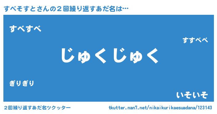 | 意味不明あだ名 | 『住所不定無職すべそすと(14歳)』 |