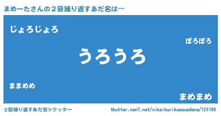 | 欧米人風あだ名 | 『ウサインまめーた』『マイケルまめーた』 |