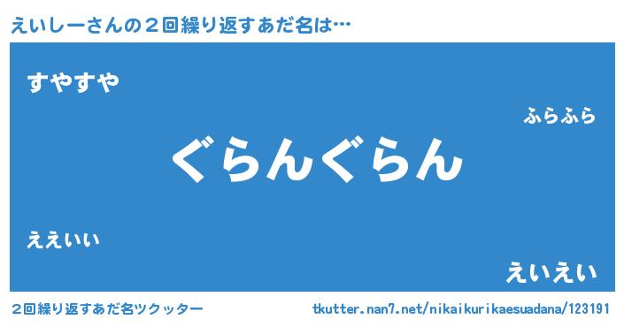 | 意味不明あだ名 | 『永久保存えいしー』『ペロリンえいしー』 |